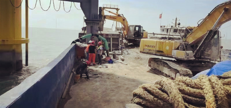 该技术采用坤泽科技的固化剂及工艺,将高含水率固化土通过管道设备,直接填充到海底泥面。施工周期短、操作便捷安全,解决泥浆状高含水率淤泥固化土水下成型、流动性等难题,从根本上解决桩基础抗冲刷防护的技术问题,同时满足施工作业的时效性需求。
